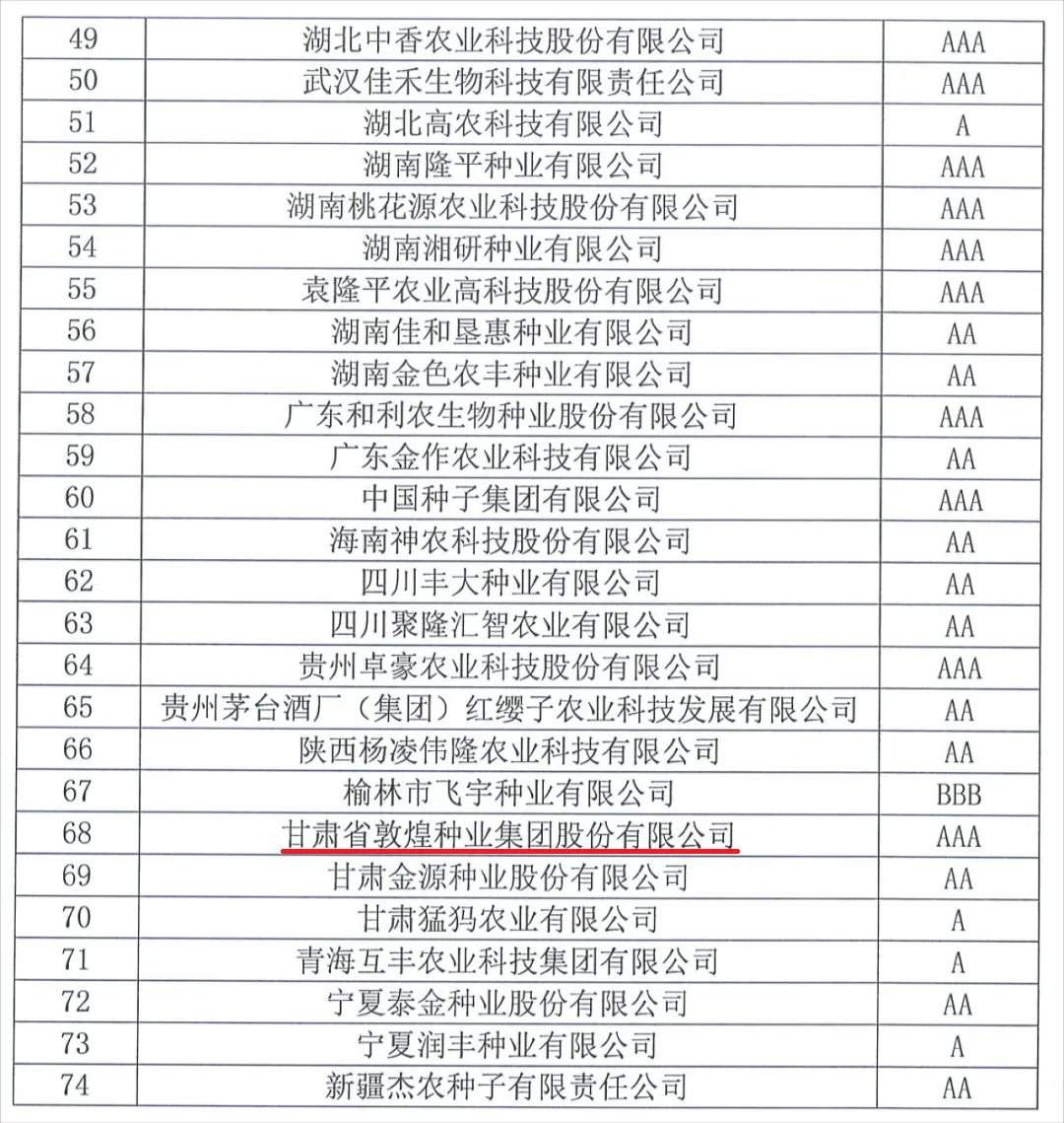 中國種子協(xié)會2023年種子行業(yè)信用評價結(jié)果公示根據(jù)《中國種子協(xié)會行業(yè)信用評價管理辦法》規(guī)定,現(xiàn)對2023年種子行業(yè)信用評價評審結(jié)果予以公示..[2023-12-14]